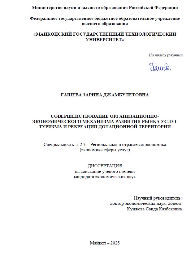 1. Диссертация Гашевой З.Д. на соискание ученой степени кандидата экономических наук. Размещена на сайте СГУ 18.07.2025 г. в 11:00.