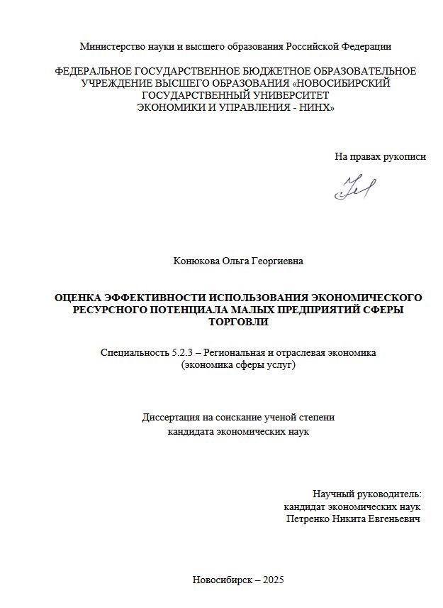1. Диссертация Конюковой О.Г. на соискание ученой степени кандидата экономических наук. Размещена на сайте СГУ 09.07.2025 г. в 10:00.